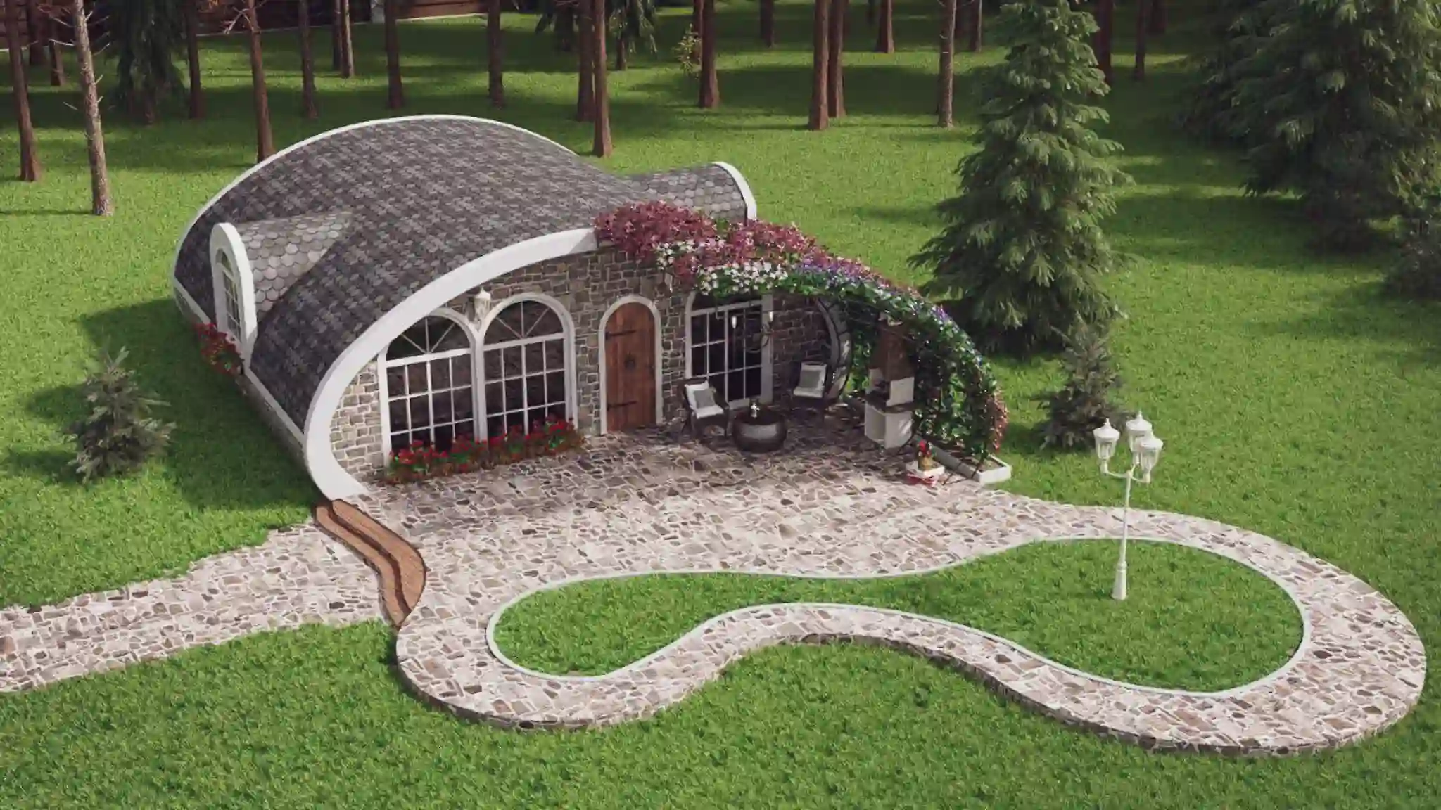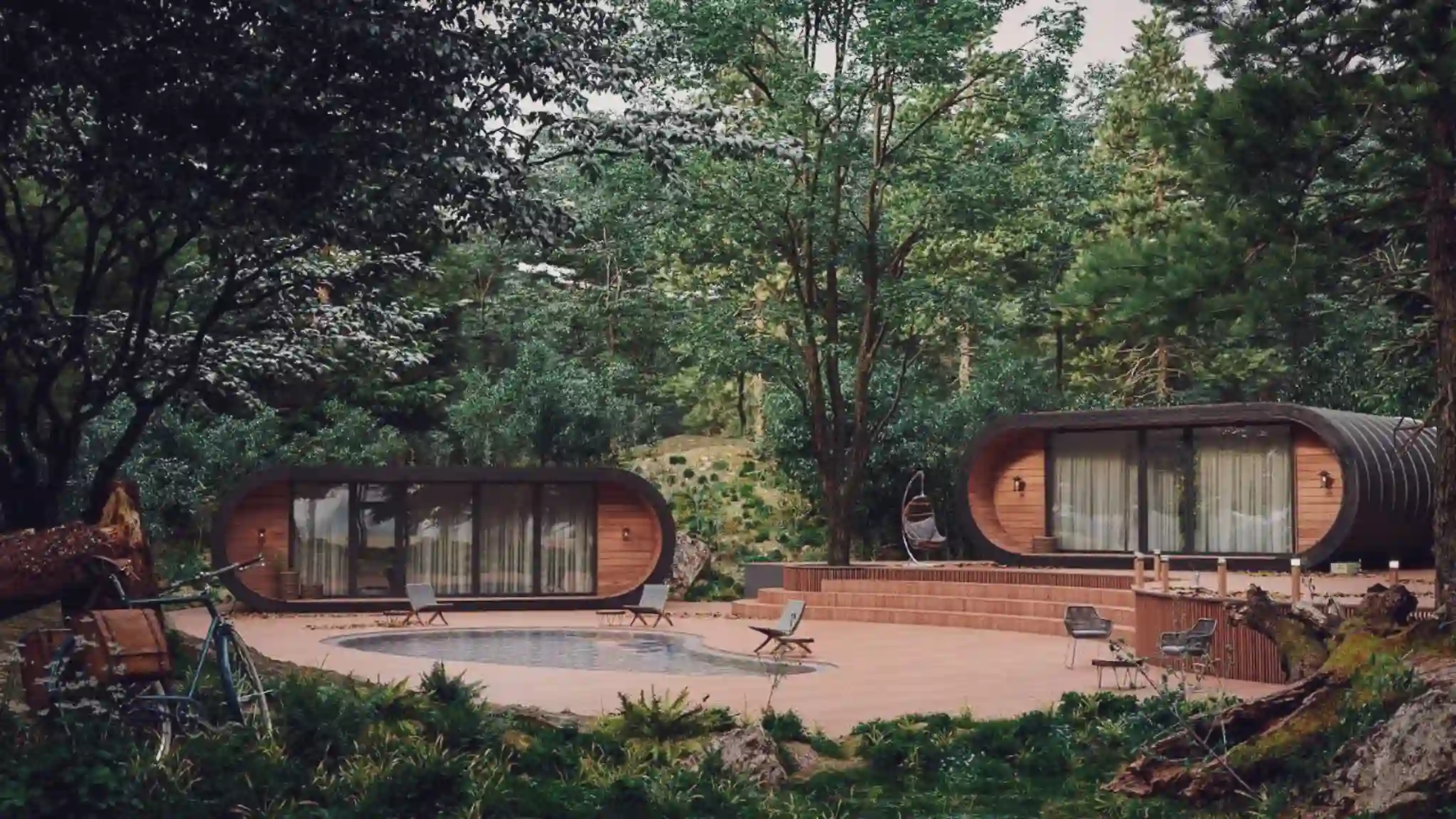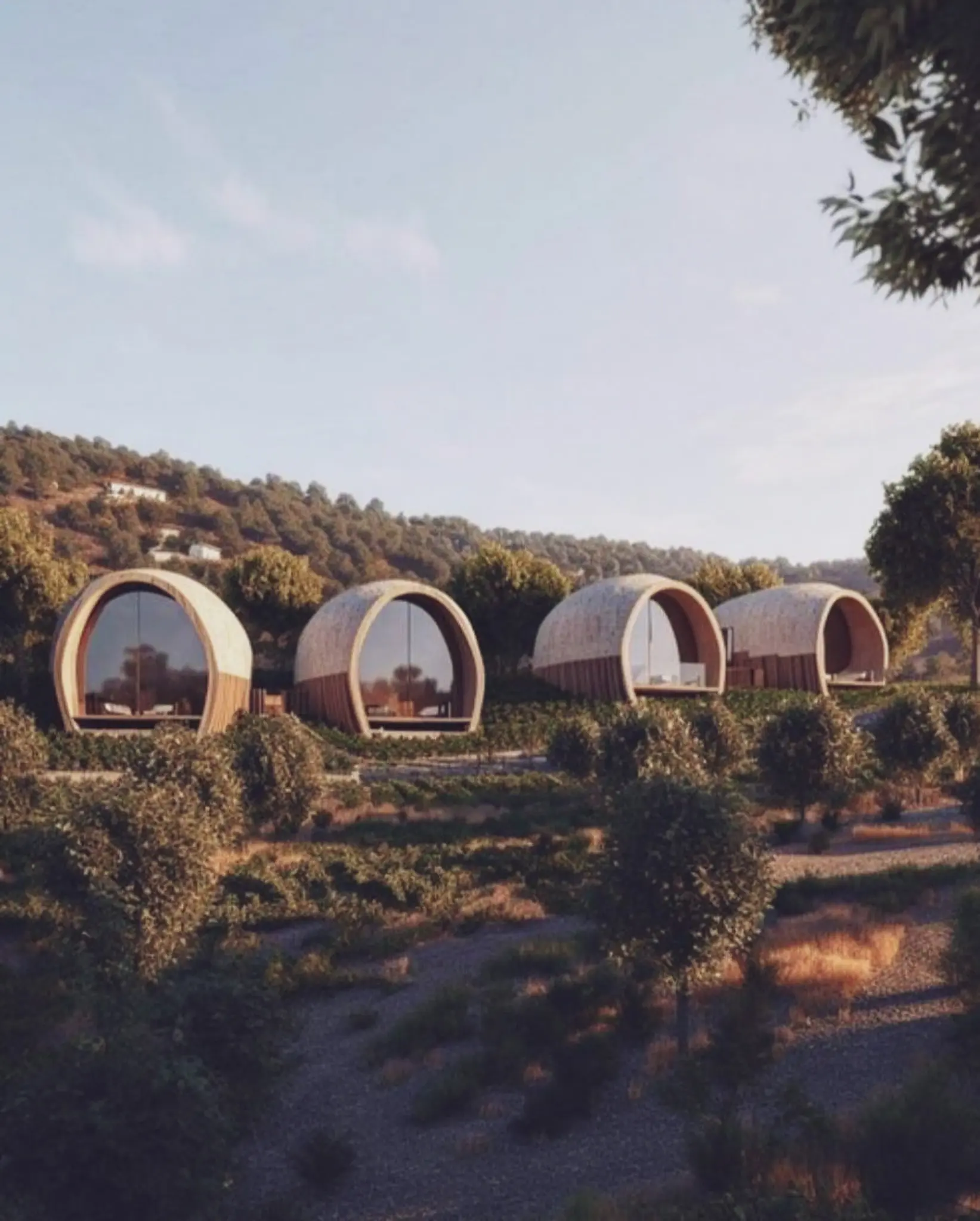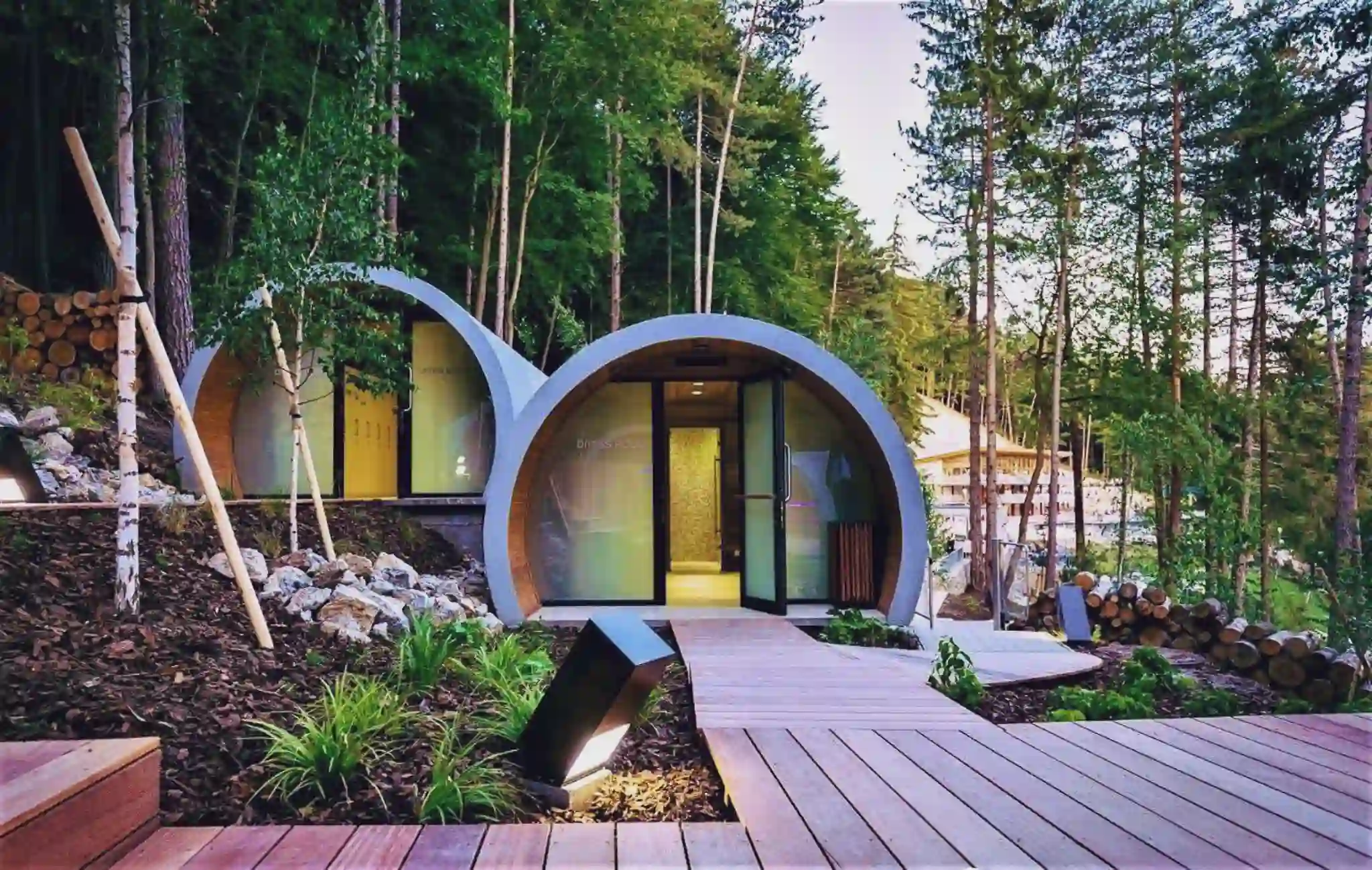 The rounded shapes and eco-friendly materials create a perfect unity with the surrounding environment, promoting a sense of tranquility and connection with nature.
