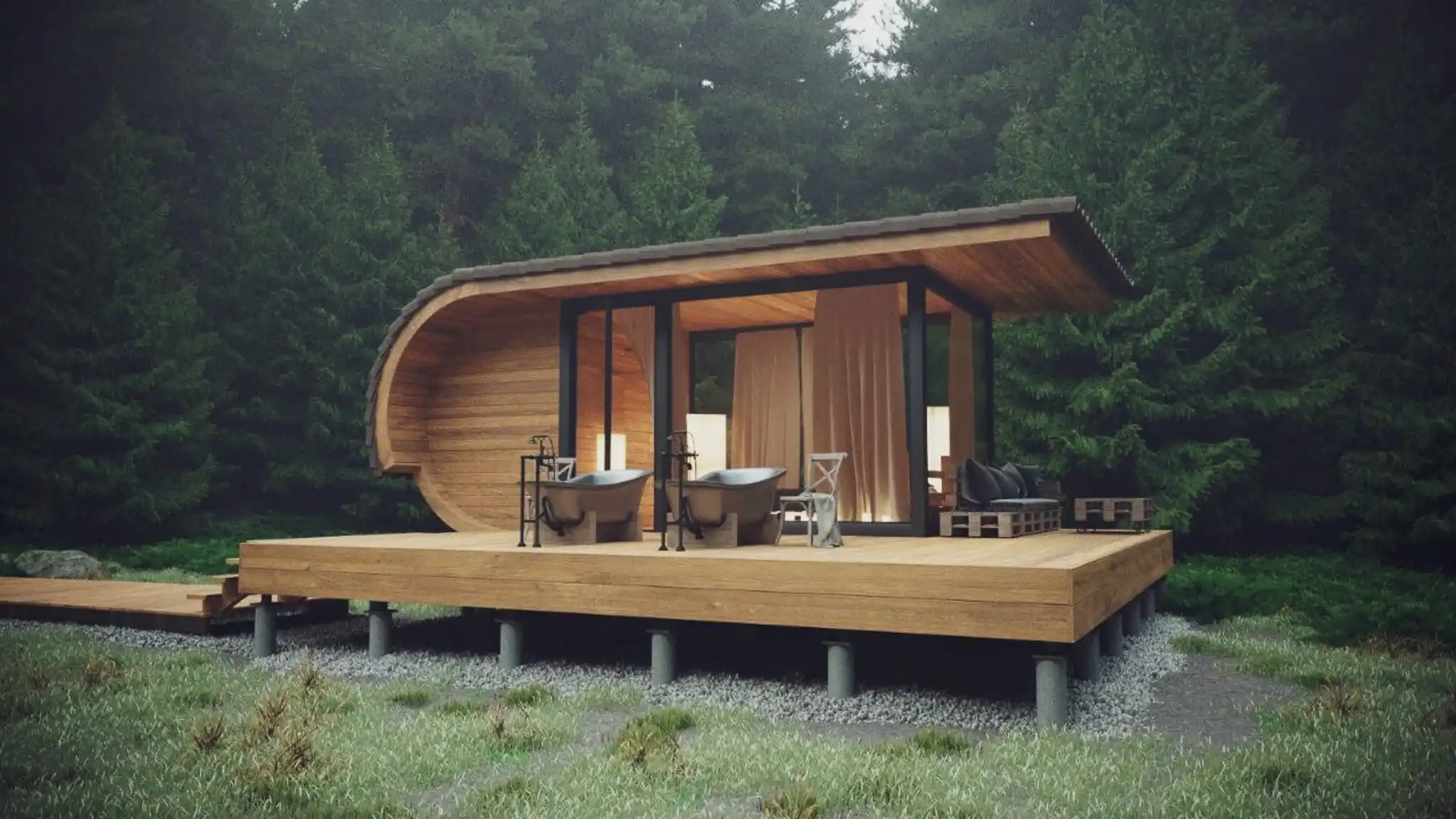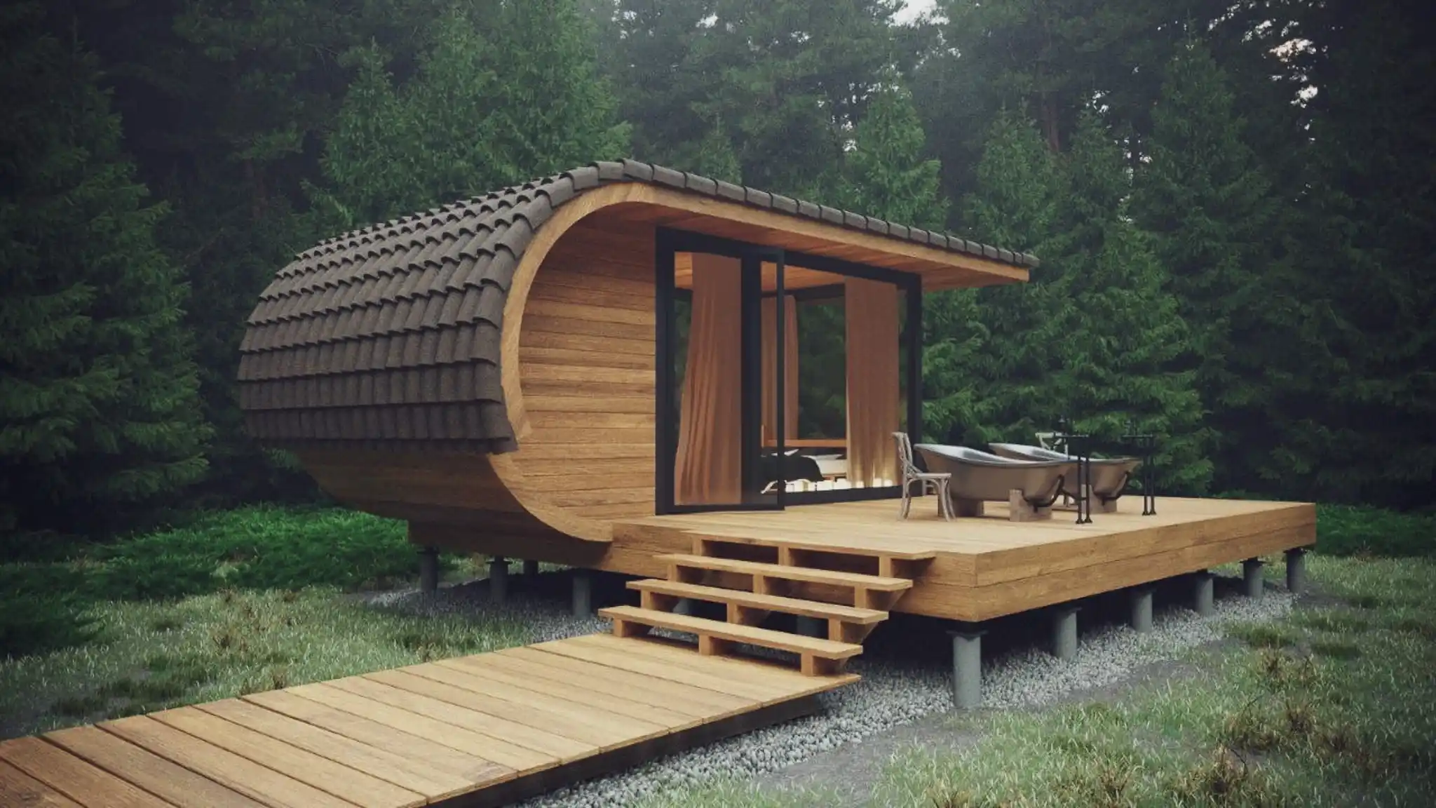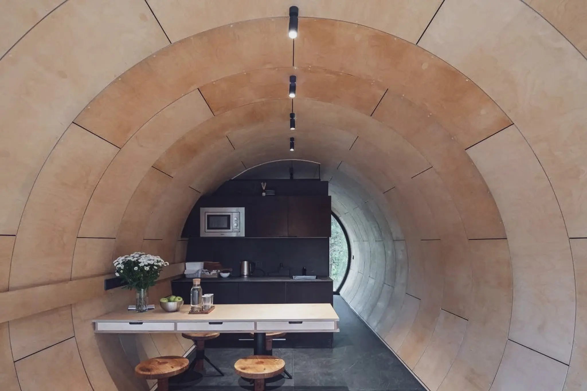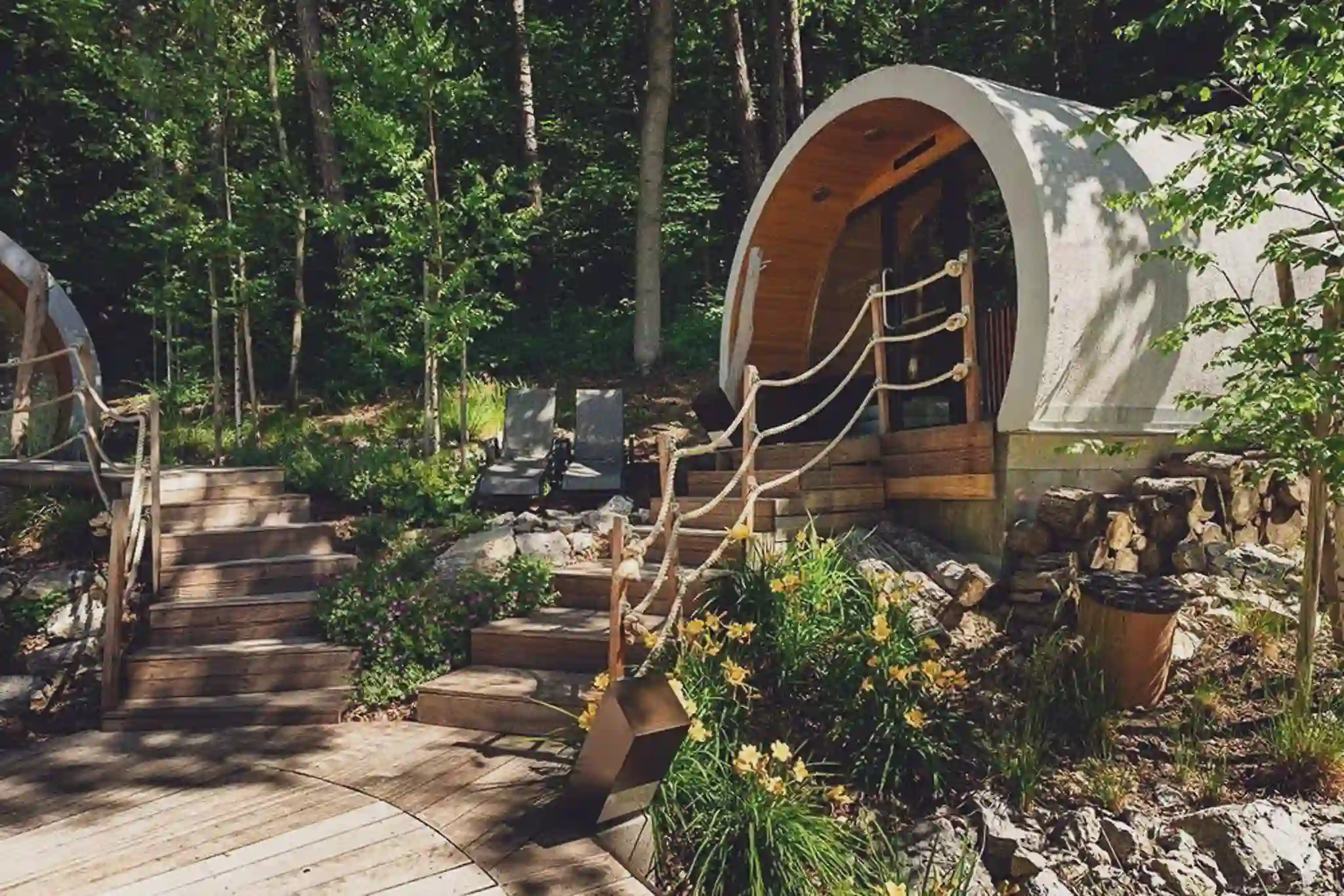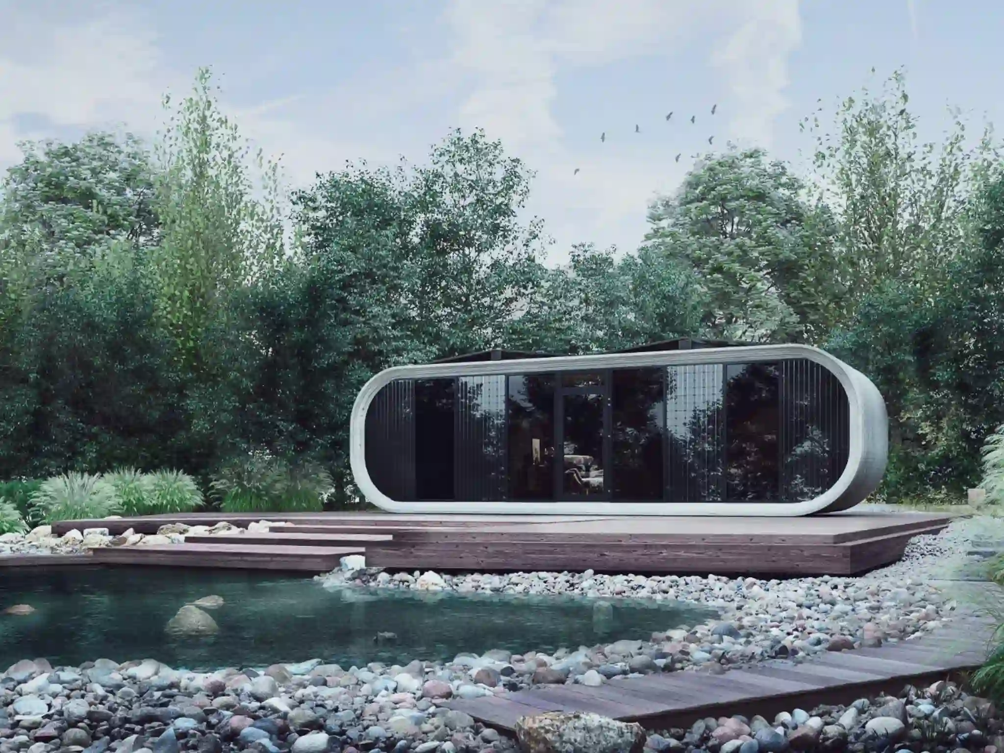The rounded shapes and eco-friendly materials create a perfect unity with the surrounding environment, promoting a sense of tranquility and connection with nature.
